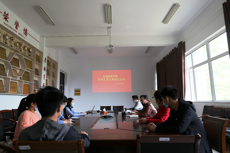 随着在校研究生党员人数的增加,迫切需要成立研究生党的基层组织,以便加强教育和管理。机械优集学院党委经过充分酝酿研究,决定成立研究生党支部,并报请校党委组织部同意。2020年4月30日下午,机械优集学院党委在机械馆A223会议室召开了研究生党支部成立大会,因疫情等原因,有2名党员请假,其他9名党员同志参加会议。