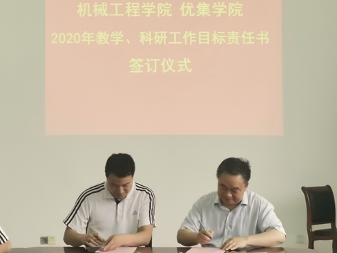 在和各专业系、教研室、中心充分对接基础上,6月10日下午,机械优集学院在机械工程馆A223会议室举行2020年工作目标责任书签订仪式,周海院长代表学院分别与各部门负责人签订了目标责任书。学院领导班子全体成员出席会议。