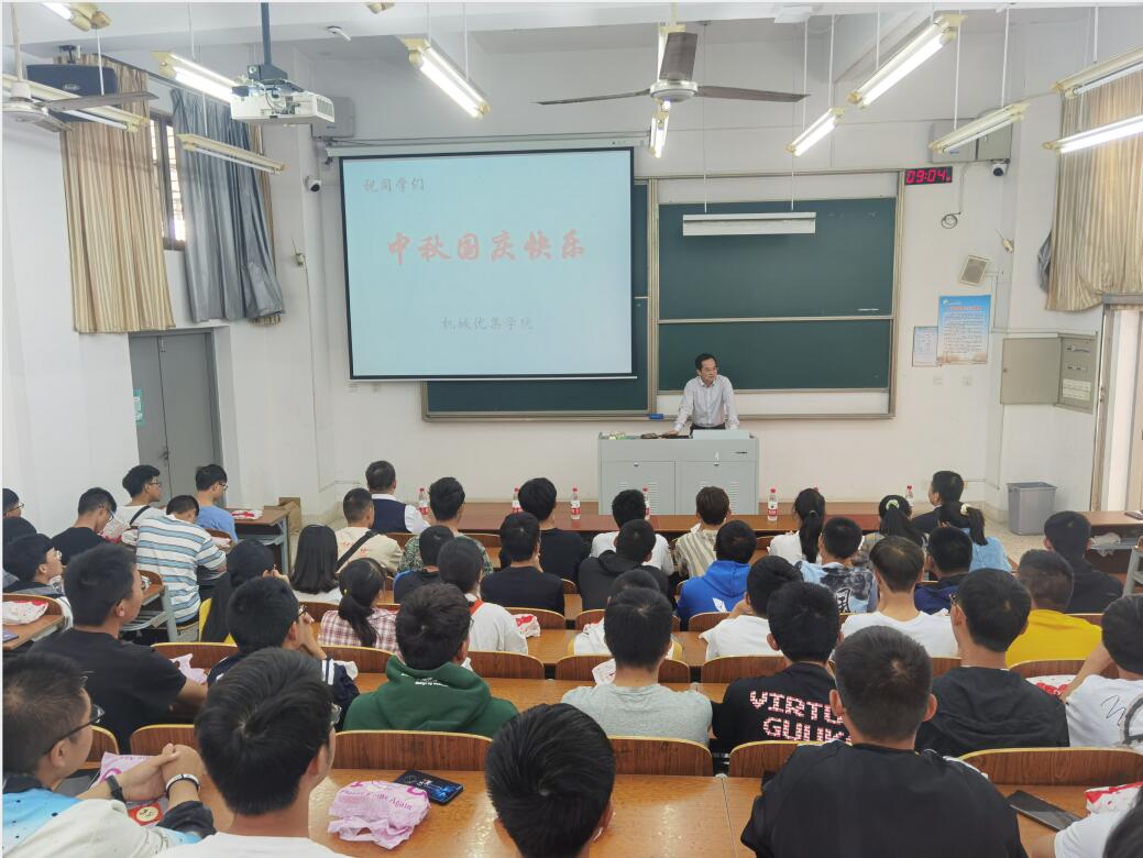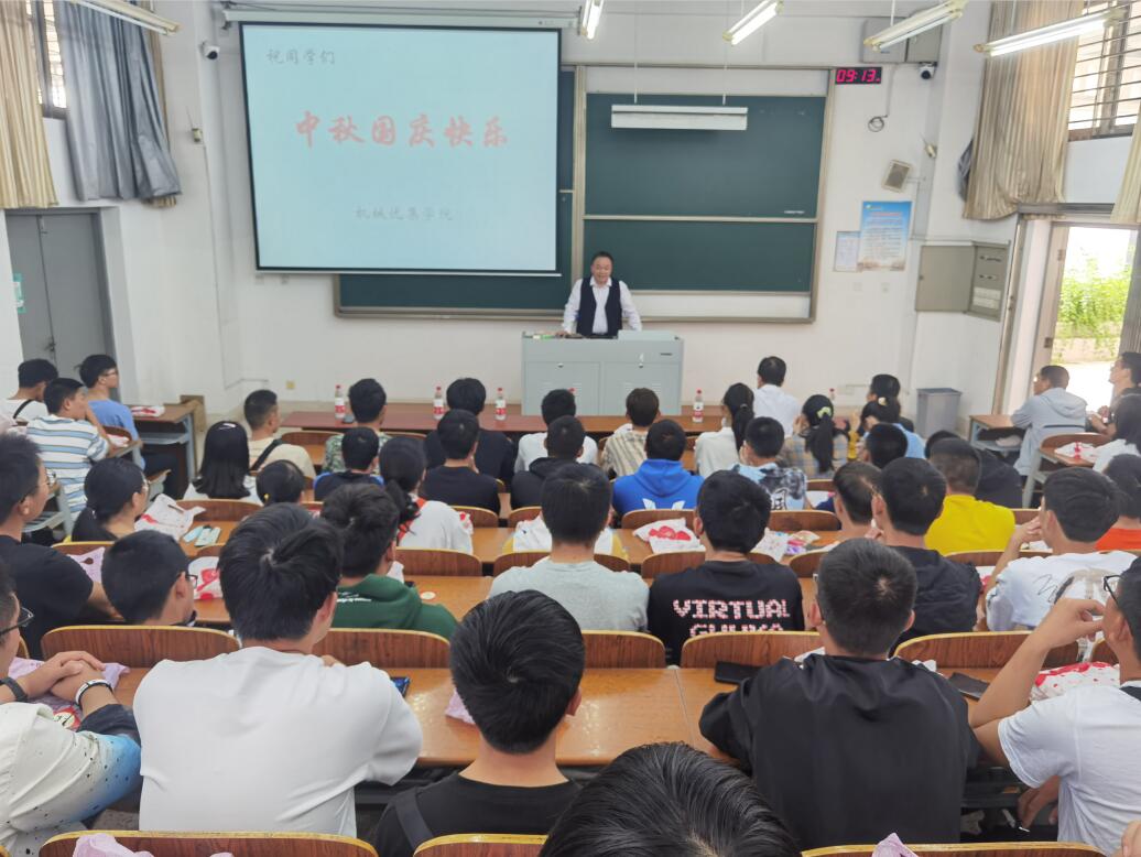 10月1日上午9点,机械优集学院在建军东路校区知达楼107举办国庆中秋双节慰问会,机械优集学院院长周海、党委书记孙雷、党委副书记秦卫兵和新生辅导员看望双节留校的新生们。