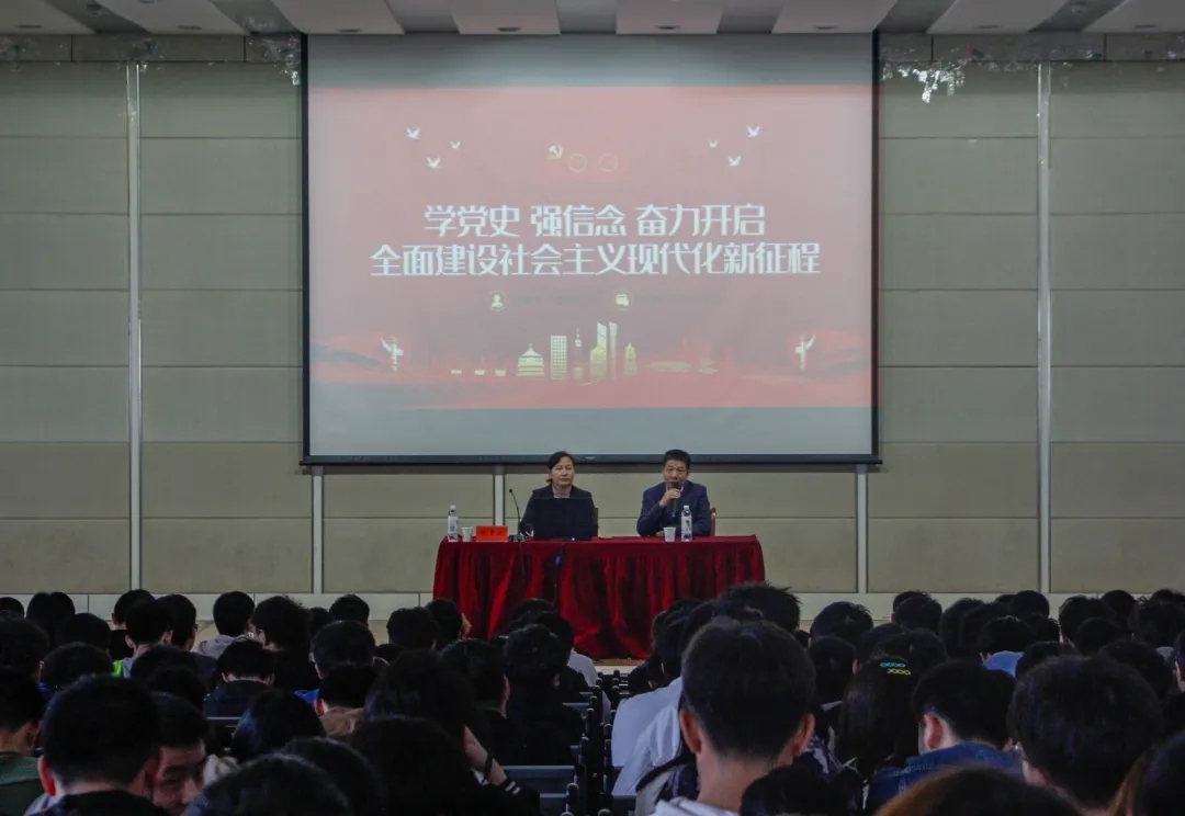 4月25日下午,在北校区化工楼报告厅,党史学习教育校党委宣讲团成员、马克思主义学院武素云老师到机械优集学院作“学党史、强信念、奋力开启全面建设社会主义现代化新征程”主题报告,机械优集学院党委副书记秦卫兵主持,北校区全体大一新生共计600余人参加。
