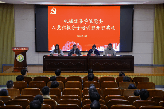 为适应新形势下发展党员工作需要,学习贯彻党的二十届三中全会精神。落实《中国共产党发展党员工作细则》、《江苏省普通高等学校发展党员工作实施细则》相关条例。10月30日下午,机械优集学院党委在机械馆报告厅举行入党积极分子培训班开班仪式。机械优集学院党委副书记闫小民,学生党支部书记及全体培训班学员参加开班仪式。