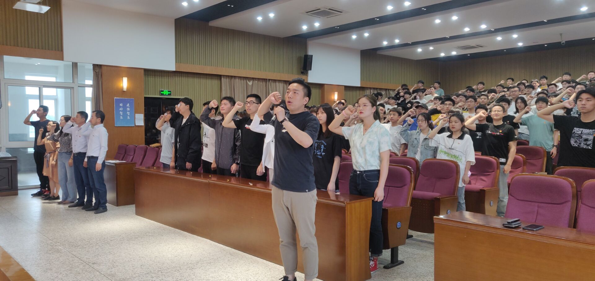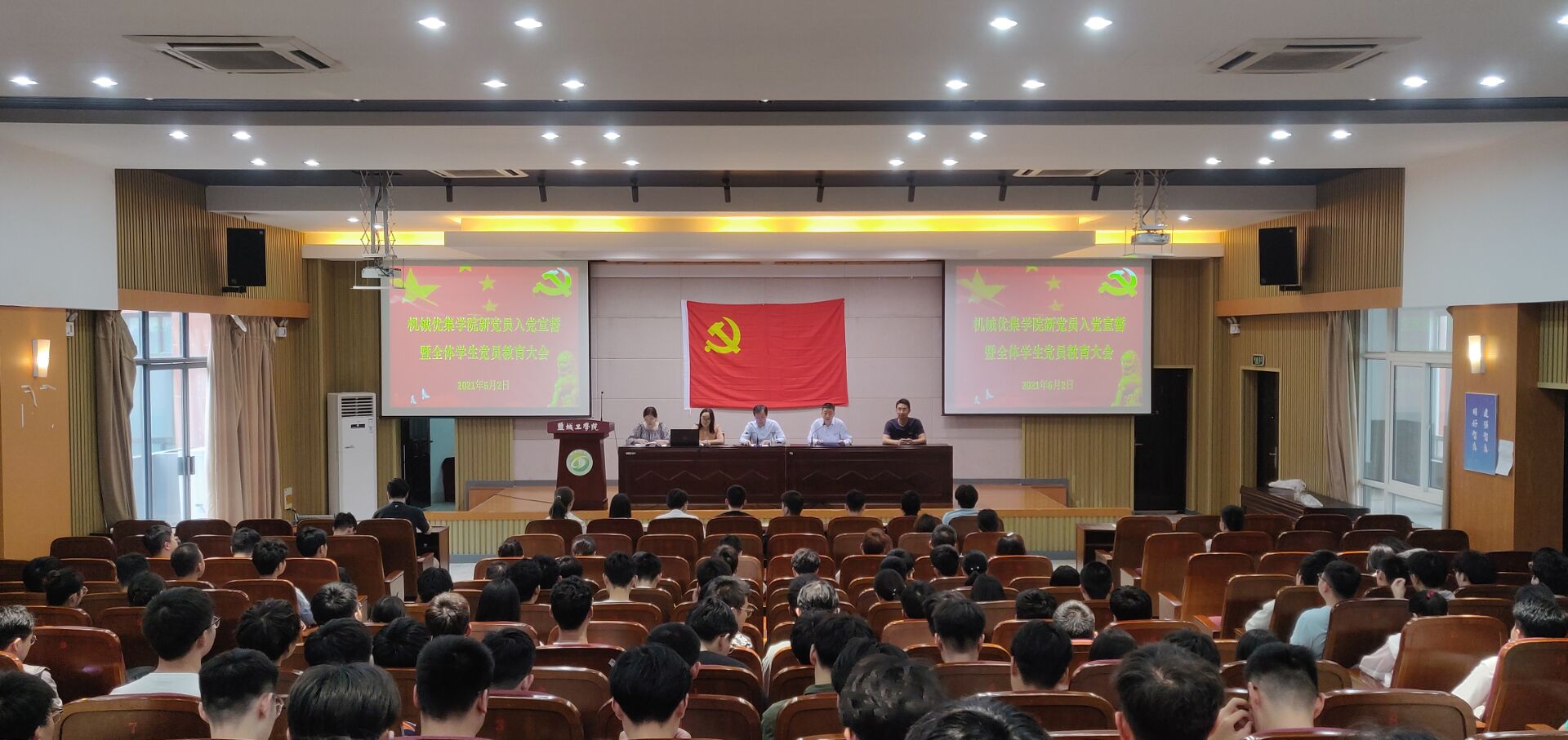 6月2日下午4点,机械优集学院在希望大道校区机械馆三楼报告厅举行春学期新党员入党宣誓暨全体学生党员教育大会,机械优集学院党委书记孙雷出席会议并讲话,党委副书记秦卫兵主持会议,学生支部书记、全体学生党员共200余人参加大会。