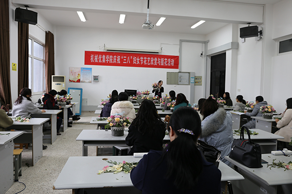 为迎接“三八”妇女节的到来,3月5日下午,我院在机械馆B403成功举办三八妇女节花艺欣赏与插花活动,近40位老师在花香四溢中,感受了花卉培栽艺术的魅力,度过一个有意义的节日。