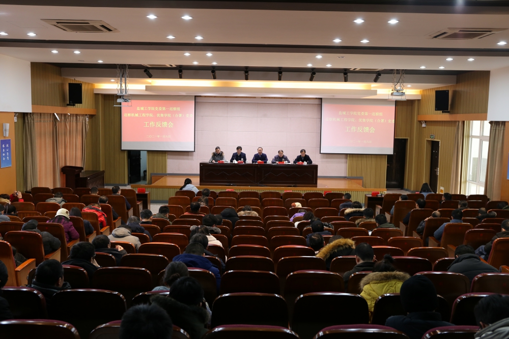 1月6日下午,在南校区机械馆报告厅,党委第一巡察组召开巡察机械工程学院、优集学院(合署)党委工作反馈会。校党委巡察工作领导小组副组长、党委常委、纪委书记、省监委派驻监察专员陈春雷,第一巡察组组长、党委常委、组织部部长倪自银,党委第一巡察组、意识形态专项督查组全体成员,机械工程学院、优集学院(合署)全体教职工参加会议。反馈会由第一巡察组副组长陈阳主持。