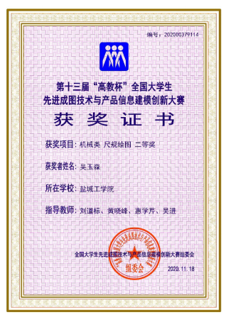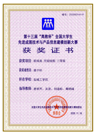 第十三届“高教杯”全国大学生先进成图技术与产品信息建模创新大赛于11月13日-15日在南昌航空大学举行。本届大赛由全国大学生先进成图技术与产品信息建模创新大赛组委会,中国图学学会制图技术专业委员会,中国图学学会产品信息建模专业委员会,南昌航空大学主办,高等教育出版社等单位协办。共吸引395所学校,647支参赛队伍,涉及参赛师生近七千人。今年的大赛采取线上形式举行。