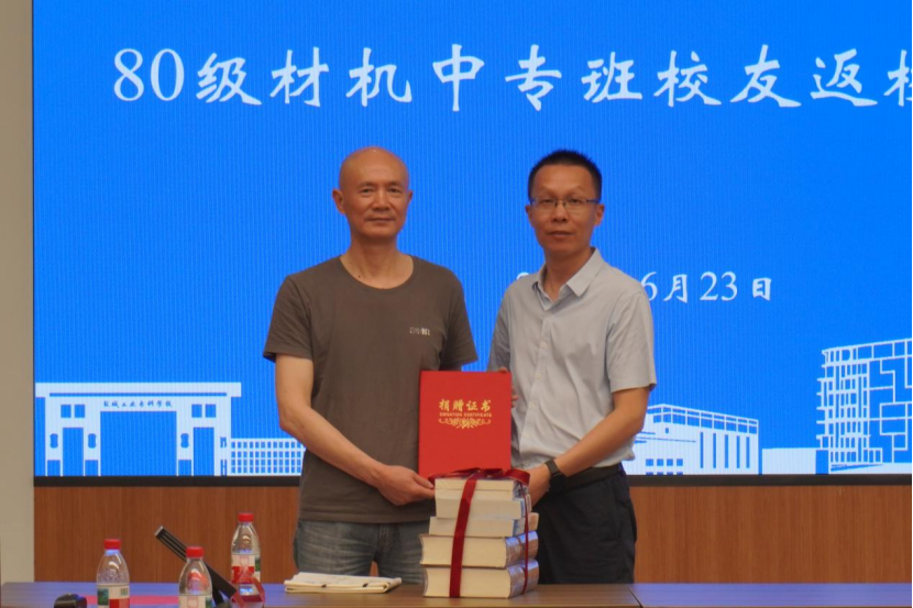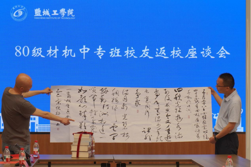 座谈会期间,校友宋伏初向学院捐赠了自己编著的书籍,并特别呈献了亲笔书写的草书作品《一剪梅·重返母材》,表达对母校的感恩之情。阎小民副书记代表学院接受赠书,并向校友颁发捐赠证书。这批珍贵的捐赠将收藏于学院图书馆,供师生学习参考,寓意着校友对母校教育事业的深情反哺。学校校友工作办公室特别为每位返校校友准备了珍贵的纪念礼物--精心制作的校友学籍卡及在校成绩单留念卡,这份承载着青春记忆的特殊礼物让校友们惊喜不已,纷纷感慨“仿佛回到了学生时代”。