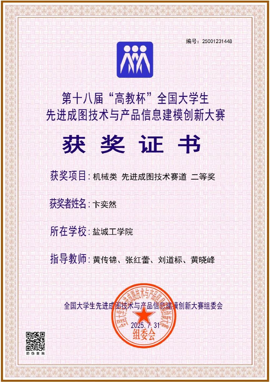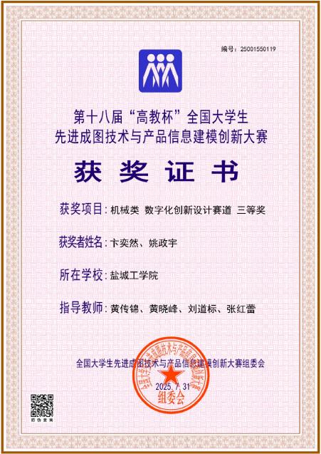 近日,第十八届“高教杯”全国大学生先进成图技术与产品信息建模创新大赛结果公布,由机械优集学院刘道标、黄晓峰、吴进 、黄传锦、张红蕾等老师指导,殷浩、卞奕然、冯岩根、朱昫曈、邱子彦、王旭昌、严珩、叶嘉铠等同学组成的参赛队,共获得团体二等奖1项,个人一等奖1项,个人二等奖3项,个人三等奖4项,创新设计赛道三等奖1项。