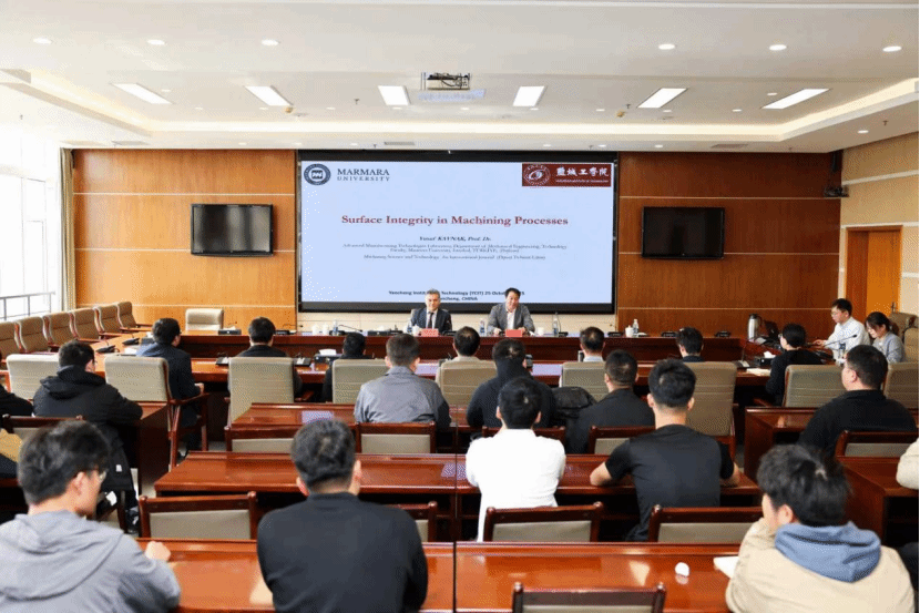 在热烈的掌声中,邵荣校长为Kaynak教授颁发兼职教授聘书,并合影留念。随后,活动进入学术报告环节。Kaynak教授以“机械加工过程中的表面完整性”为题,系统阐述了高性能材料加工中的表面完整性机理、增材制造后处理技术等前沿成果,并结合其承担的土耳其国家科学基金、NASA合作项目等案例,分析了绿色制造与可持续发展趋势。报告深入浅出,师生踊跃发言交流。