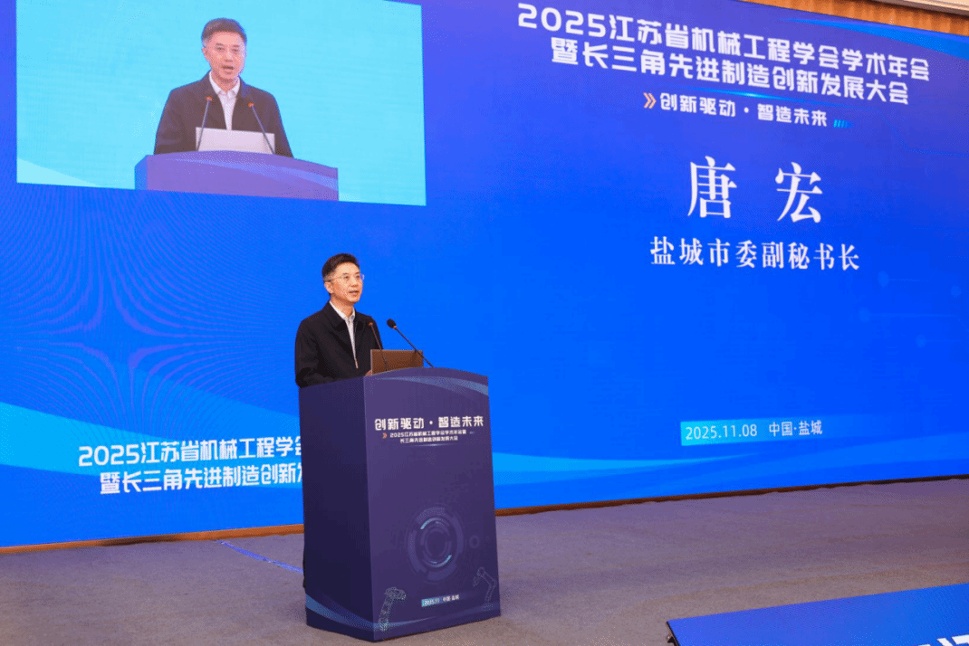 2025江苏省机械工程学会学术年会暨长三角先进制造创新发展大会于11月7日至9日在盐城召开。此次大会由江苏省机械工程学会主办,我校承办,是长三角地区机械工程领域一次高层次、高水平的学术盛会。大会以“创新驱动·智造未来”为主题,汇聚了中国工程院院士陈学东、天津大学教授王国彪等知名专家,以及来自高校、企业和科研机构的400余名代表,共同围绕人工智能与机械工程、绿色制造、智能制造等前沿领域展开深入交流。江苏省科学技术协会二级巡视员王小峰、盐城市委副秘书长唐宏、江苏省机械工程学会理事长夏汉关、盐城工学院党委书记方海林出席并致辞。