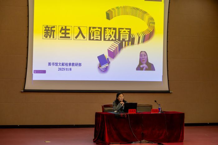 卓建霞结合图书馆全景布局图,从馆藏分布、书籍借阅、电子资源使用等角度展开系统讲解,并现场演示馆藏检索系统、中国知网等数据库的操作方式,帮助新生高效掌握文献查找技巧及资源使用方法。她鼓励同学们充分利用图书馆丰富资源,把课堂学习与自主探索相结合,提升学术素养与信息检索能力。