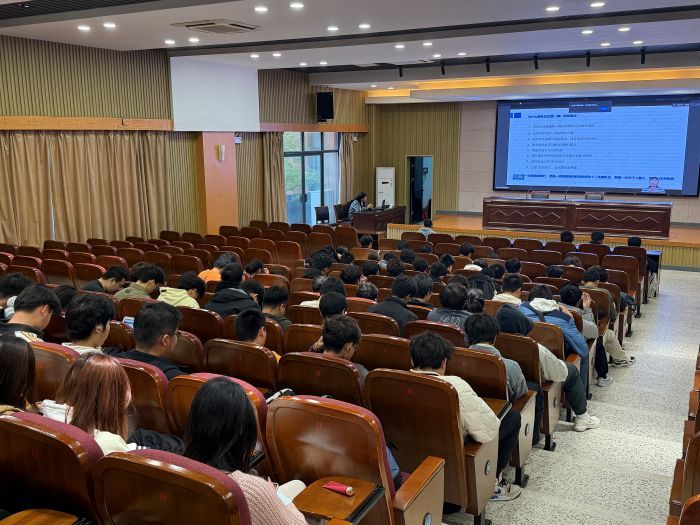 韦春华以《从“心”开始——解锁大学新旅程,拥抱心灵促成长》为题,围绕环境适应、学习转型、人际交往、情绪管理等常见新生困惑展开辅导。她提出:一要主动适应新环境,建立健康人际关系;二要做好时间管理,实现学习与生活并行发展;三要掌握情绪调节策略,保持心理弹性;四要善用学校心理支持资源,遇到问题及时求助。她希望同学们以积极乐观的心态迎接大学新挑战。