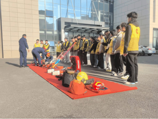 在指战员的带领下,学生们近距离参观了消防车库、器材装备库和荣誉室。从威风凛凛的消防车到精密复杂的破拆工具,从厚重坚韧的消防服到先进的生命探测仪,指战员们耐心细致地讲解着每一件装备的功能用途与操作方法,并现场演示了空气呼吸器佩戴、水带连接等基础消防技能。学生们踊跃参与互动,亲手触摸消防装备,亲身体验操作流程,在实践中直观了解消防工作的专业性与危险性,也对“细节决定生死”的安全理念有了更深刻的认知。