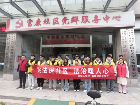 为深入贯彻落实国家宪法宣传日精神,弘扬宪法权威,增强全民法治观念,机械优集学院于2025年12月10日下午组织学生志愿者前往盐城市亭湖区富康社区,开展"宪法进社区,法治暖人心"普法宣传日志愿服务活动。通过走进服务群众的方式,引导青年学生在实践中传播法治精神,强化社会责任,推动高校志愿服务与社区治理深度融合。