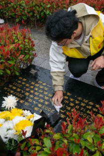 仪式结束后,同学们手持清洁工具,认真细致地擦拭每一块烈士墓碑,清理周边杂物,以实际行动缅怀革命先辈。在瞻仰墓碑、聆听英雄事迹的过程中,大家深刻感悟先烈们浴血奋战、无私奉献的崇高精神,接受了一场深刻的爱国主义与革命传统教育。