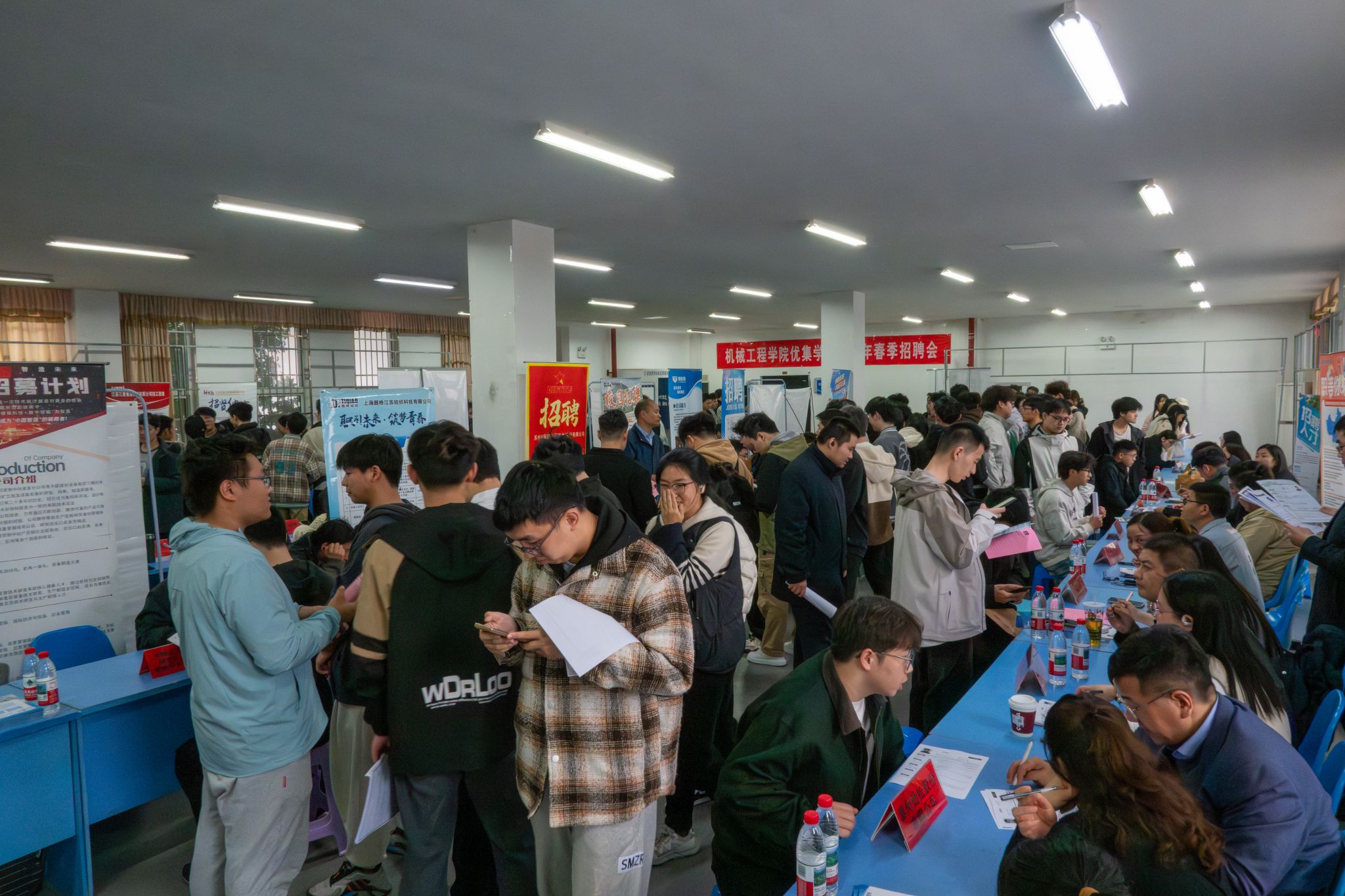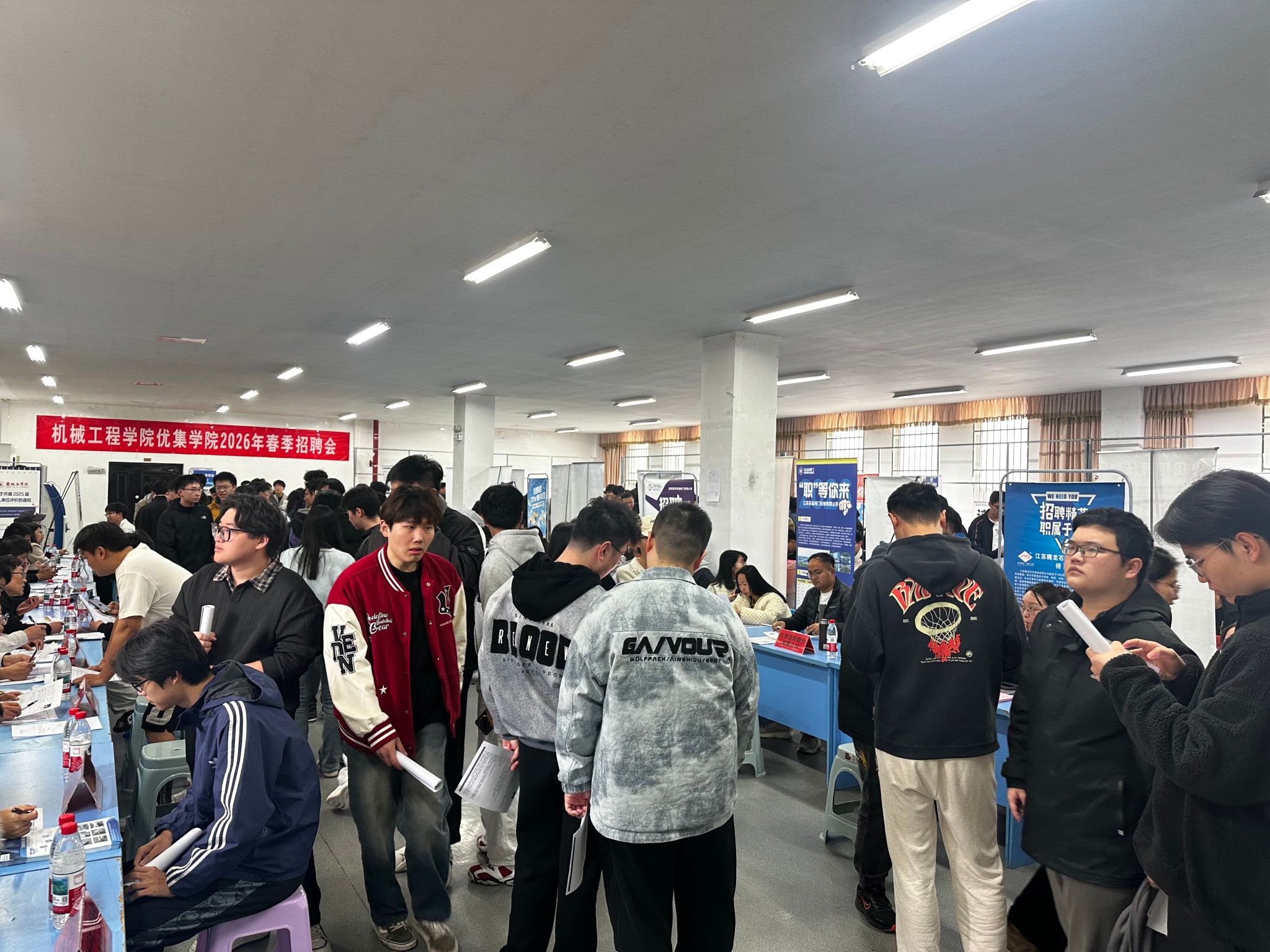 4月1日下午,机械优集学院在学校“一站式”社区大学生就业市场举办2026年春季首场双选会。党委常委、副校长邢晓平,学生处、招生与就业创业指导处副处长阳韬,就业创业指导中心主任韩金原,机械优集学院副院长(主持工作)宦海祥、党委副书记闫小民到场指导,学工办、毕业班辅导员及全体毕业生共计七百余人参加活动。