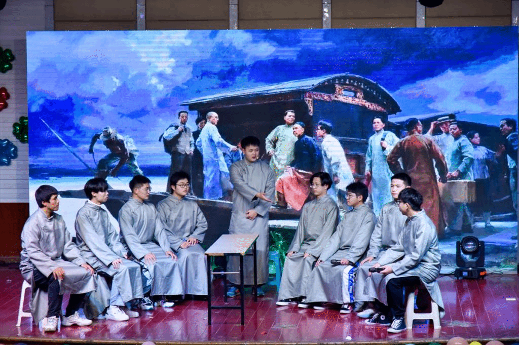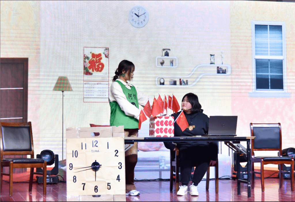晚会在《少年中国说》的舞蹈中拉开帷幕,“少年强,则国强,少年智,则国智”一句句振奋人心的呐喊深深地刻进同学们心中,激励同学们要奋发图强,为神州奋起,为祖国强大增添自己的一份力量。辅导员陈亚雷老师表演的相声《口吐莲花》,妙语连珠,诙谐有趣,赢得了同学们经久不绝的掌声。古筝弹奏的《青花瓷》婉转动人,优柔的琴声让同学们仿佛置身于山明水秀的江南。小品《时间都去哪儿了》将微信、微博、抖音等同学们平时耗时最多的AAP虚拟成人,提醒同学们珍惜时间,发人深思。舞台剧《百年华诞,盛世华章》展现了中国共产党探索救国救民道路的艰辛历程,慷慨激昂。晚会在《我和我的祖国》的大合唱中画上了完美的句号。