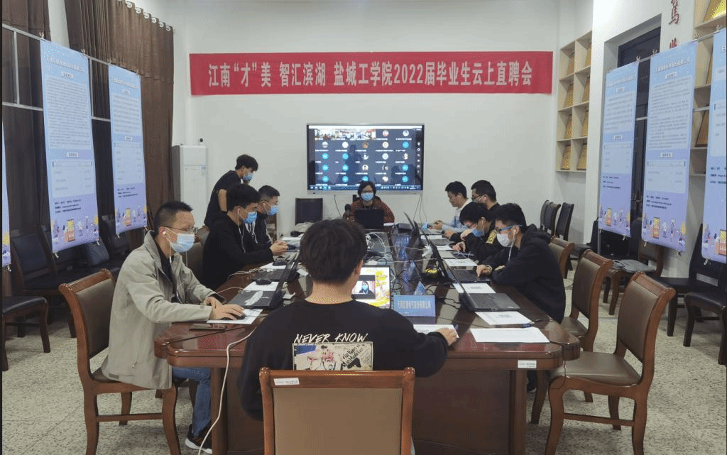 4月19日下午,“江南‘才’美,智汇滨湖”盐城工学院2022届毕业生云上直聘会在机械馆A223顺利举行,本次招聘会由盐城工学院和无锡市滨湖区人才中心牵头、机械优集学院承办,来自无锡滨湖区的工装自控工程(无锡)有限公司、航天新气象科技有限公司、雷勃电气(无锡)有限公司、无锡贝斯特精机股份有限公司、无锡蠡湖增压技术股份有限公司及无锡马山永红换热器有限公司等11家知名企业参与其中。滨湖区人社局局长桑捷与机械优集学院党委副书记马晓英云上会面,共同祝愿活动顺利。
