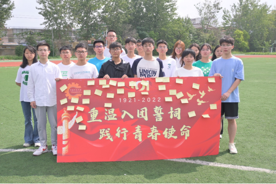 10月1日,学院团委在建军东路校区举行“重温入团誓词,勇担时代使命”主题活动。在新生辅导员冯媛媛老师的带领下,全体团员在团旗团徽前高举右拳,齐声宣读入团誓词。随后同学们齐唱团歌《光荣啊,中国共青团》,庄严嘹亮的歌声回荡在操场的每个角落。最后,同学们在活动展板上留下自己的对祖国的祝福语并合影留念。