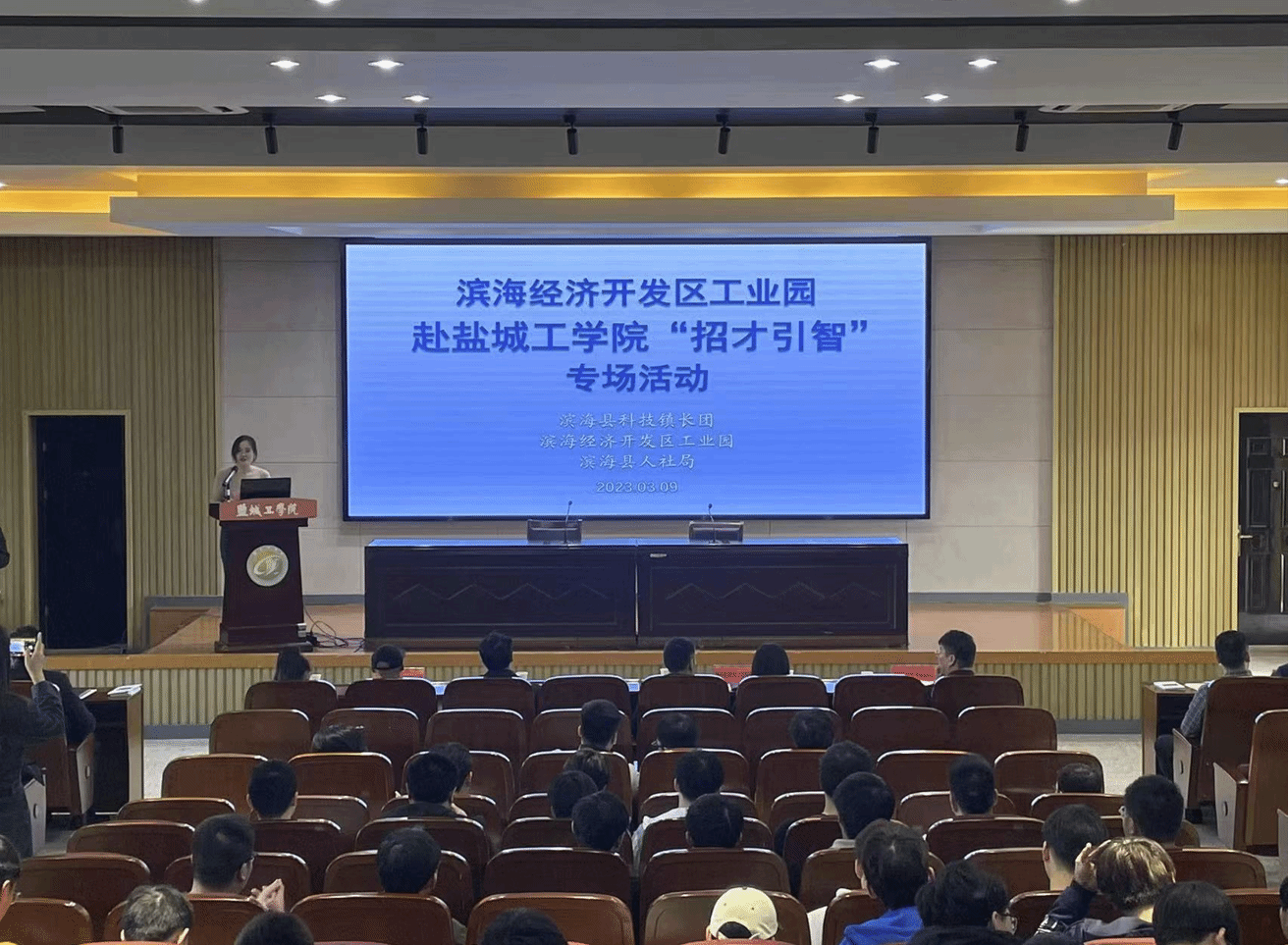 为做好2023届毕业生就业工作,抢抓春季促就业关键期,3月9日下午,由机械优集学院主办的滨海经济开发区工业园2023年赴盐城工学院“招才引智”专场活动在南校区机械馆报告厅成功举办。校学生处副处长王益群、学院党委副书记马晓英、副院长宦海祥、校就业创业指导中心老师到现场与滨海县人社局负责人和用人单位进行深入交流,了解企业发展现状和用人需求。