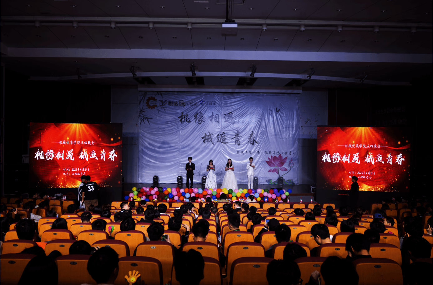 在五四青年节即将来临之际,为深入学习弘扬五四先驱崇高的爱国理想和革命精神,集中展现盐工青年师生的时代风貌,4月21日晚7点,机械优集学院在希望大道校区五四报告厅举办“机缘相遇,械逅青春”五四晚会,党委副书记马晓英、学工办副主任程云庆、新生辅导员和机械优集学院全体大一新生共计600余人参加了此次活动。