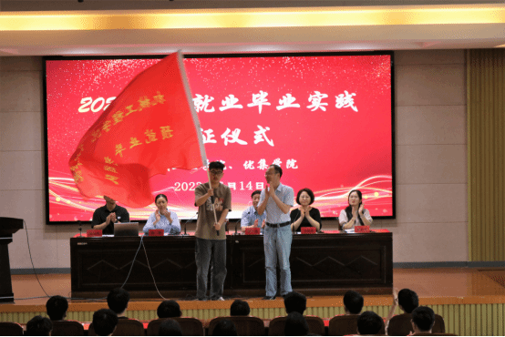 出征仪式上,周临震为2020级预就业毕业实践学生团队出征授旗。他激励学生,要珍惜学习机会,加强学习实践,在企业平台上提升素质,增长本领,为未来优质就业打下良好基础,并预祝2020级预就业毕业实践工作取得圆满成功。