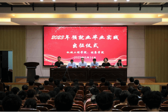 6月14日下午,机械优集学院在南校区机械馆报告厅举行预就业毕业实践出征仪式暨职场礼仪讲座。院长周临震、党委书记徐子连、副院长陈青、学工办副主任程云庆、团委副书记张长生出席,2020级预就业学生和师生代表二百余人参加会议,会议由党委副书记马晓英主持。