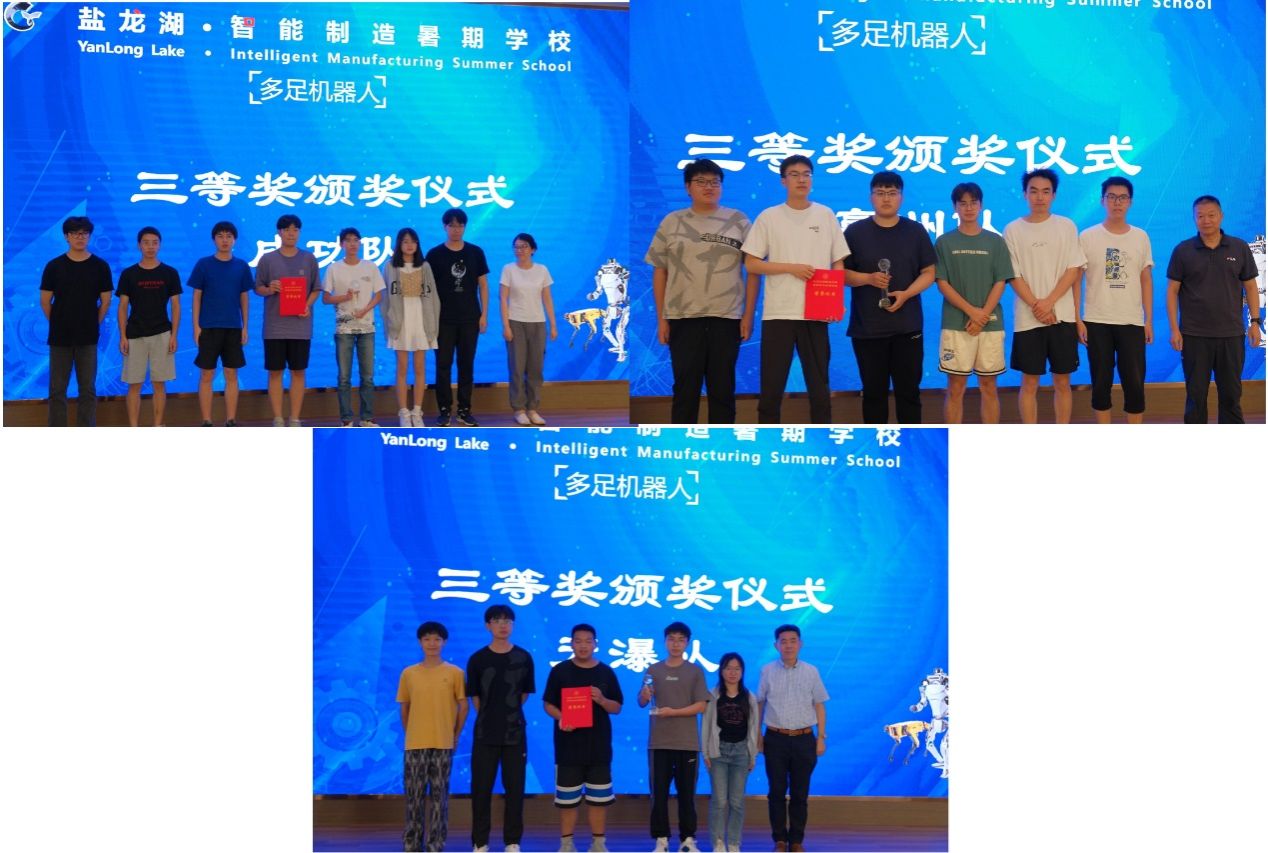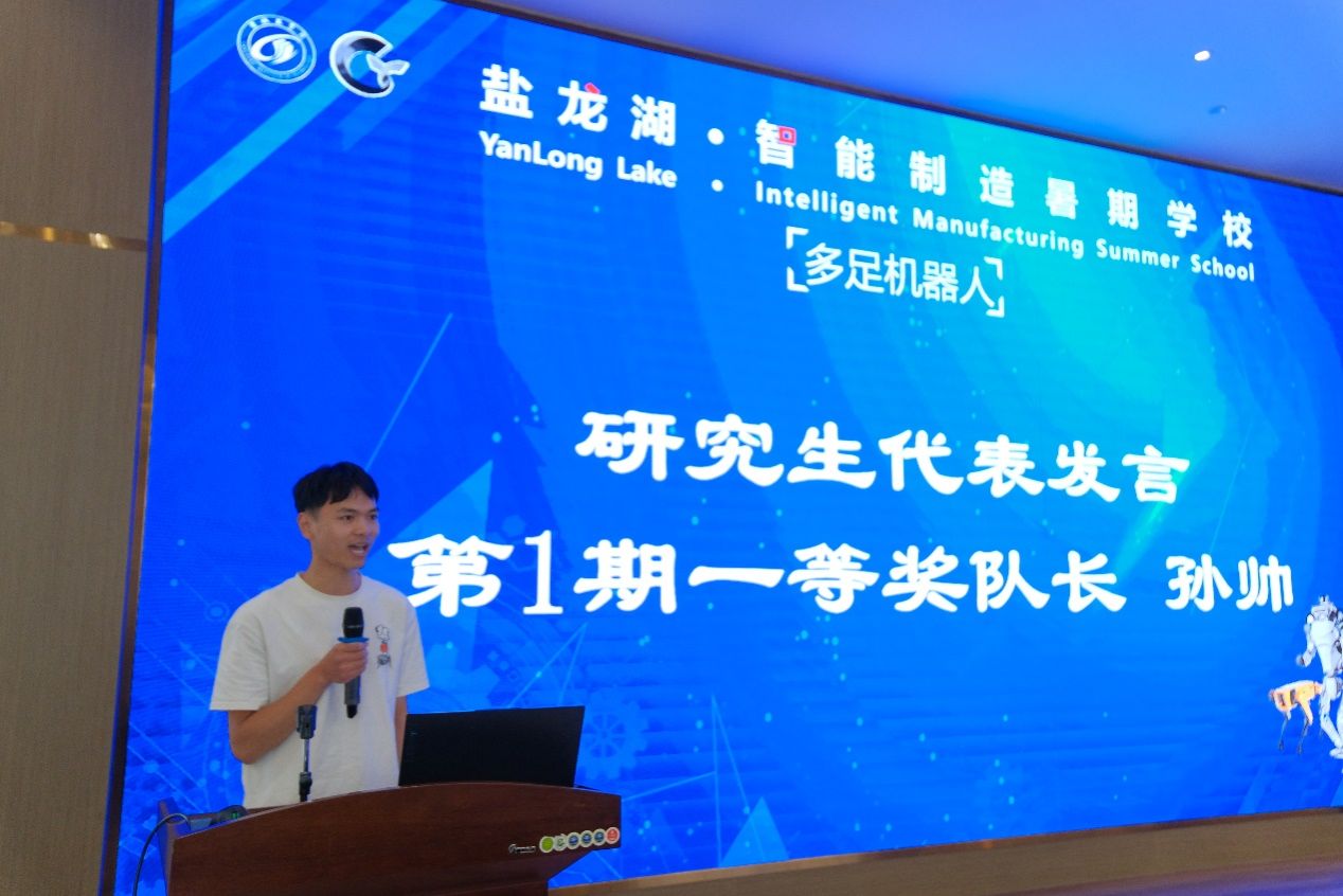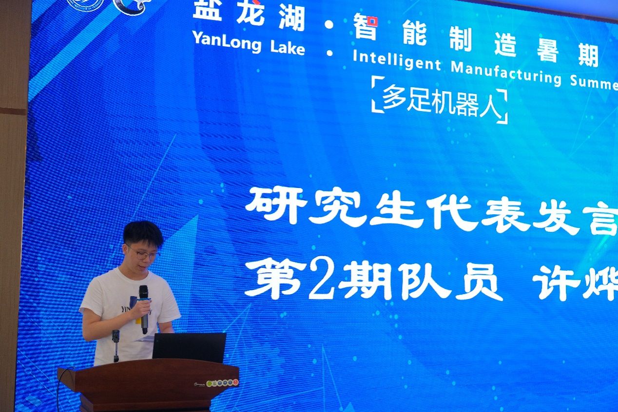 暑期学校第一期32名学员分5支队伍,分别完成了多足机器人的实物样机开发与制作,并在活动现场进行了项目路演与汇报答辩,由12专家评委现场打分并决出一二三等奖。一等奖获奖队代表孙帅同学,及第二期学员代表许烨同学分别发言;暑期学校活动指导老师卢倩博士对各队伍的方案进行了点评,对暑期学员第二期35名学员即将开始45天“人形机器人”的学习培训提出具体要求。