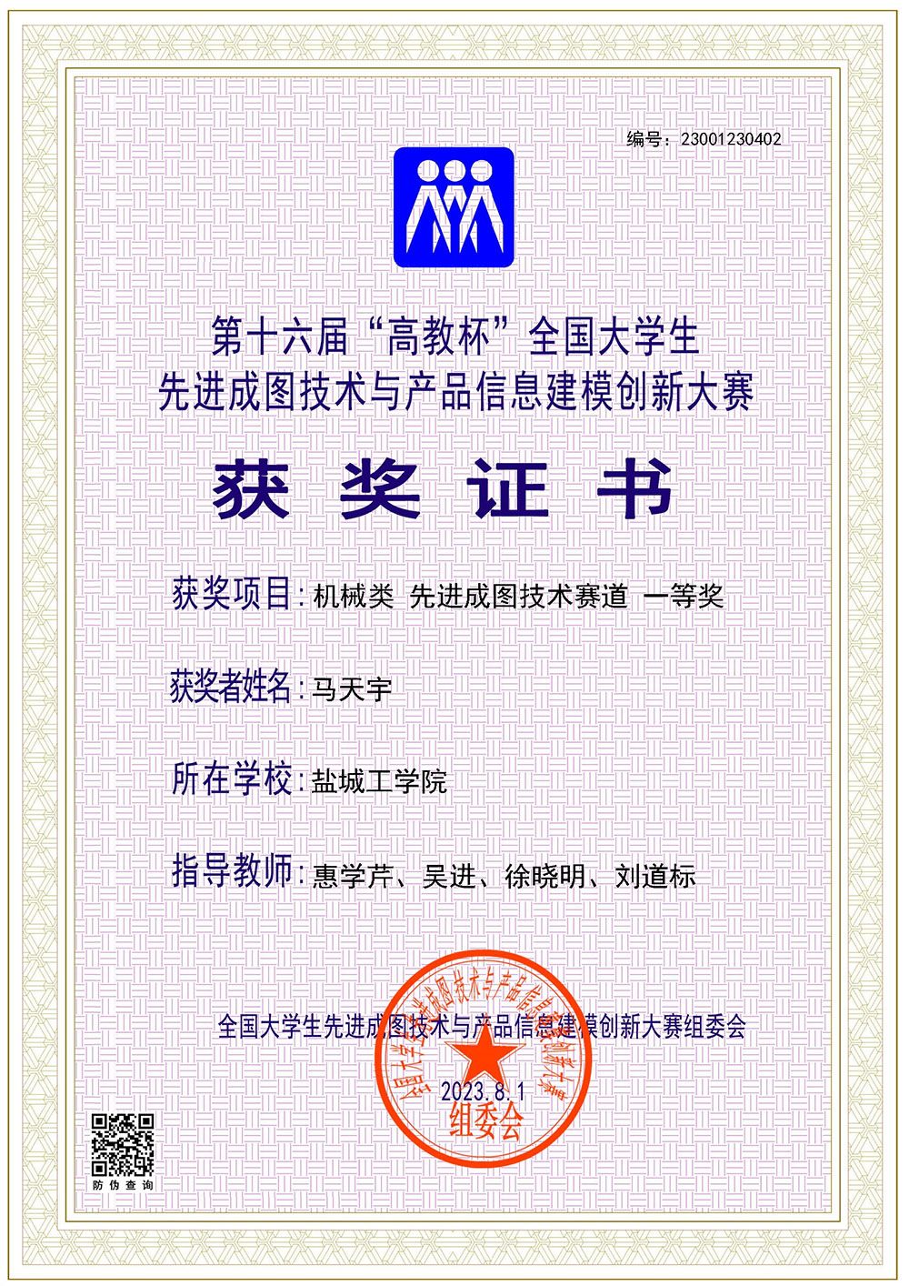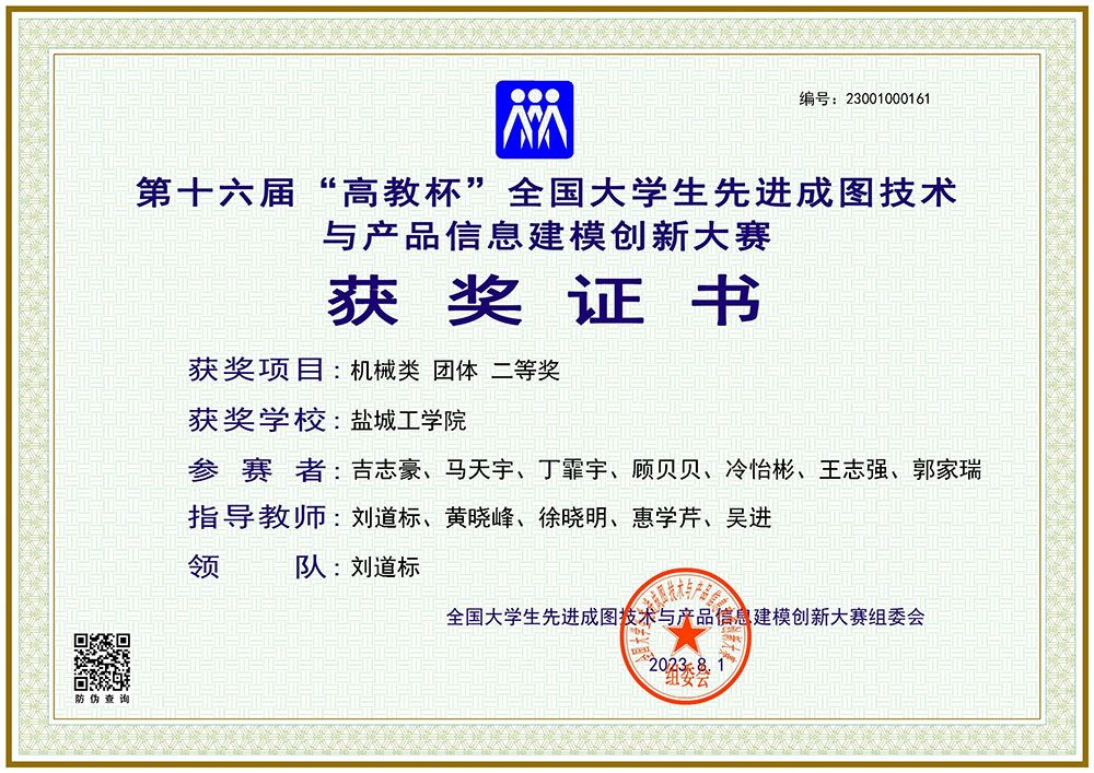 2023年7月28日-31日,第十六届“高教杯”全国大学生先进成图技术与产品信息建模创新大赛全国总决赛在重庆交通大学和重庆建筑工程职业学院举行。由机械优集学院刘道标、黄晓峰、惠学芹、吴进、徐晓明等老师指导,机械优集学院、优培学院吉志豪、马天宇、顾贝贝、唐佳怡、郭家瑞、冷怡彬、丁霏宇等七位同学组成的参赛队在机械类别比赛中取得优异成绩,共获得个人一等奖2项、个人二等奖5项,团体二等奖1项。