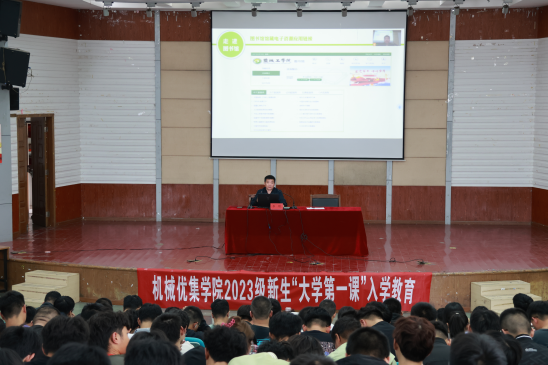 为指导和帮助2023级新生尽快适应新环境、顺利完成角色过渡、科学规划学习生活,10月8日-12日,机械优集学院在建军东路校区五四报告厅和知行楼410教室以线上线下相结合的方式开展2023级新生“开学第一课”系列教育。会议邀请学校教务处副处长李爱国开展学籍管理规定专题教育,图书馆副馆长李明开展图书馆入馆教育,学生处副处长韦春华开展新生入学适应专题教育,机械优集学院党委副书记马晓英主持,新生辅导员和656名大一新生参加。