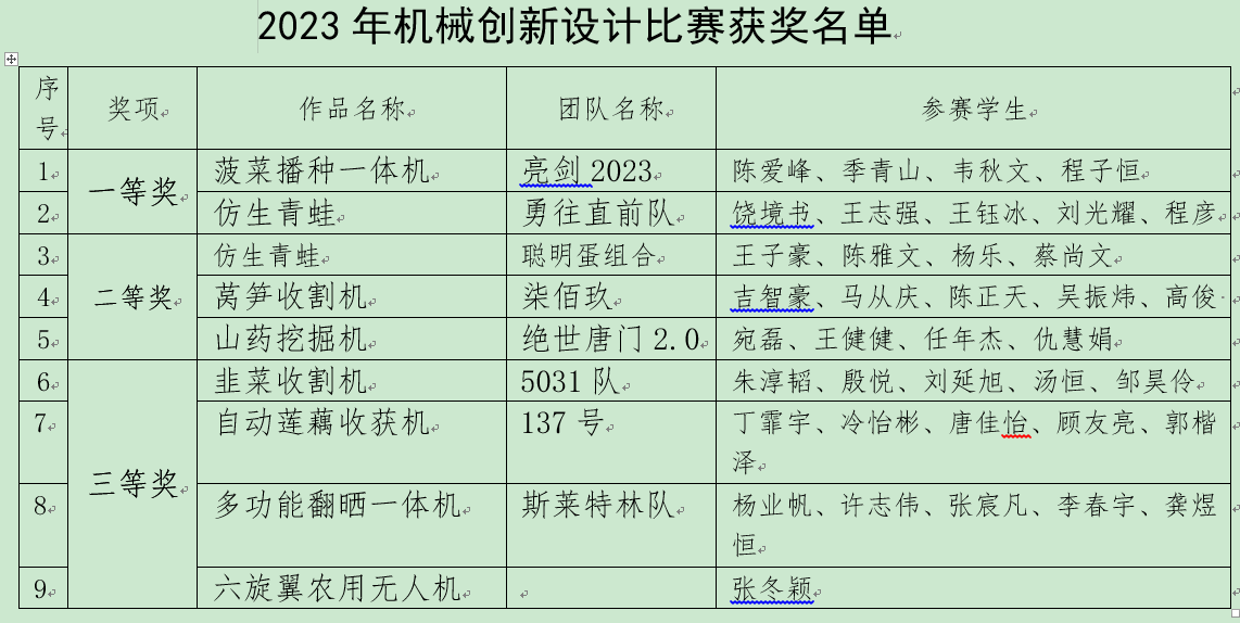 通过机械创新校选赛充分调动了学生的参赛热情,提升了学生的工程实践能力和创新能力,遴选出参加2024年省赛的参赛作品,加深了学生对参赛主题的理解,强化了学生对参赛作品的认识,更好的为参加省赛做好了备赛的准备工作。