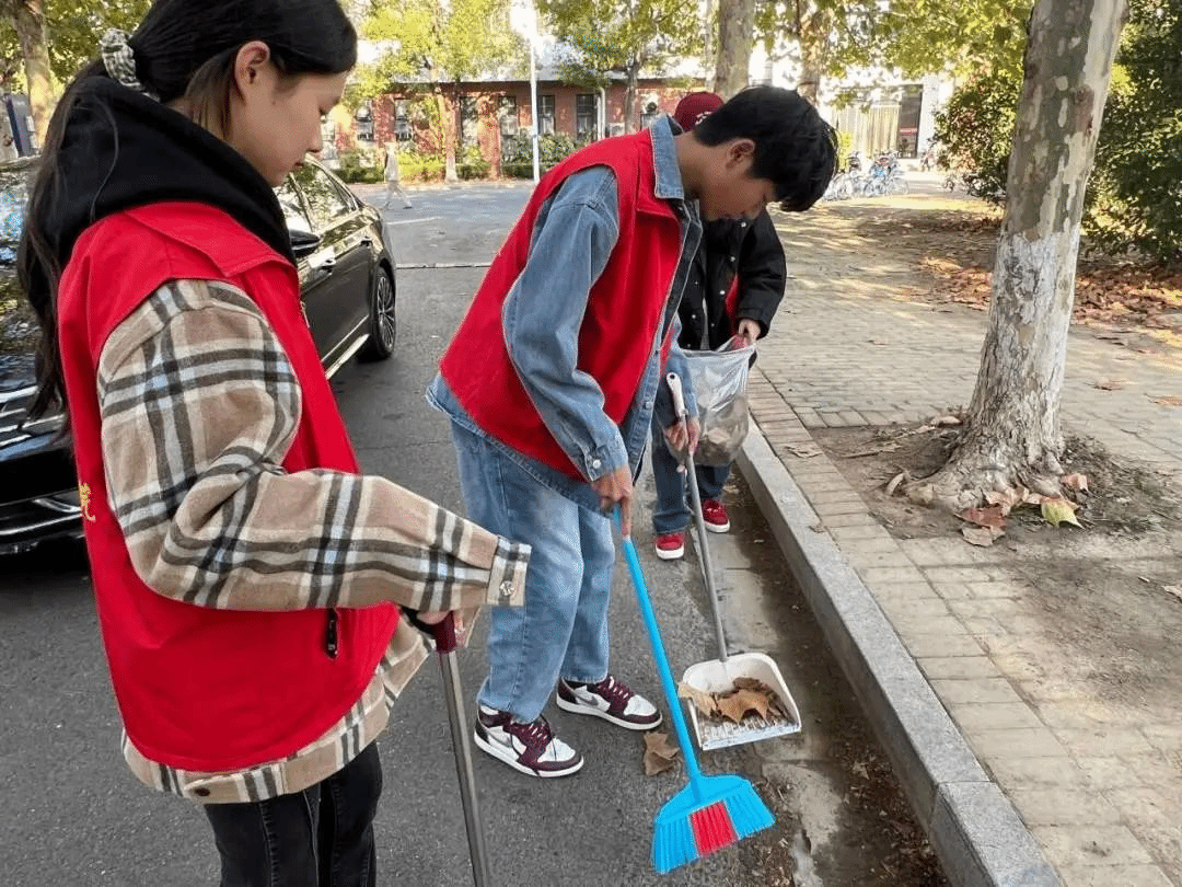 下午2点,同学们在大学生活动中心集合完毕,分成四组,由各小组组长分别带头前往南校区各大道进行落叶清扫,领入各自的区域进行清扫工作。初冬的落叶飘舞在瑟瑟的寒风中,大家穿着统一志愿者服装,手持扫帚和垃圾袋,齐心协力地清理着落叶和垃圾。阳光透过稀疏的树枝洒在辛勤劳动的志愿者们身上,构成了一幅美丽的画卷。大家互相协助,细致地清理着每一个角落的垃圾,同时清理了落叶,让校园重焕生机。