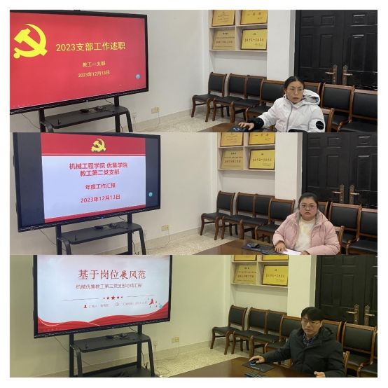 会上,机械优集学院7个党支部聚焦基层党建工作,围绕2023年度党建工作开展情况、存在的问题和不足、下一步工作打算等方面逐一进行述职。述职后,评议组成员根据7个支部书记PPT汇报情况和党支部台账资料进行打分,评选出机械优集学院教工三支部和学生三支部为机械优集学院党委2023年度优秀党支部。