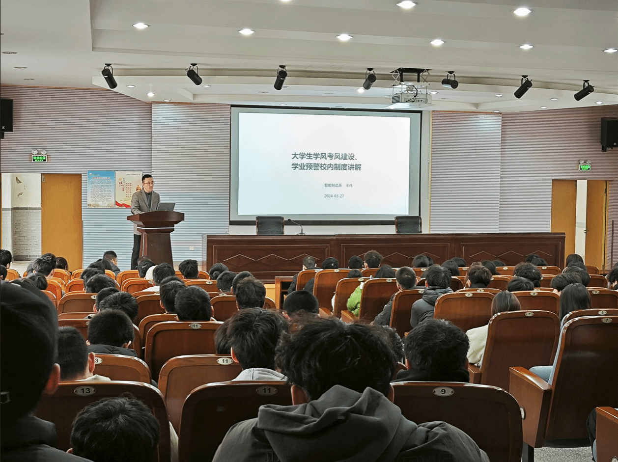 2024年3月27日下午,机械优集学院分别在北校区体知楼105和南校区土木馆报告厅面向智能制造专业系下辖的机械电子工程专业、智能制造工程专业2022级和2023级本科生开展智能制造专业系教育大会。智能制造系主任卢倩、副主任王伟,硕士生导师代表曾勇、张本国,学科竞赛办主任侯鹏亮,研究生秘书梁华,青年教师代表周耀武、董善文出席,大会由机械优集学院学工办副主任程云庆主持,机械电子工程专业、智能制造工程专业大一、大二约500名本科生参加。