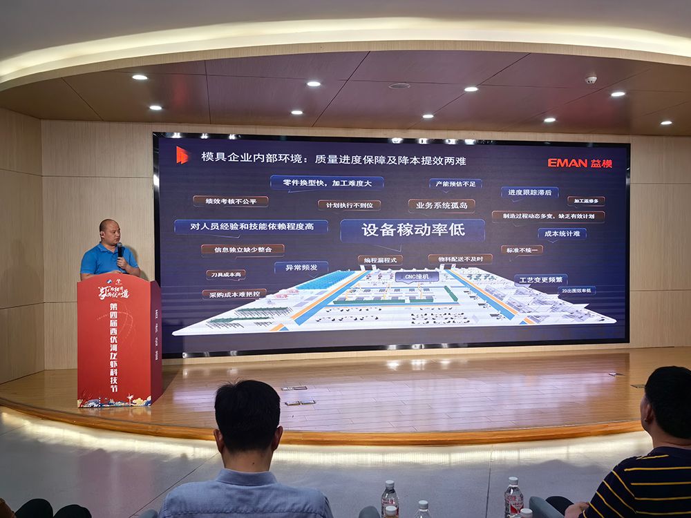 武汉益模科技股份有限公司华东大区区域总监曹天赐作题为《卓越模具工厂数字化升级规划及落地案例分享》的主题报告。曹总以数字化模具工厂的提质、降本、增效为主题,分享了从数字化工具/系统的信息共享到模具工厂的设计、编程、工艺、加工、仓储、物流和装配等流程升级,再到以APS为核心的快速响应和精益生产以及高效协同化制造,最终借助工业互联网、5G及AI等技术实现模具工厂的智能化决策等方面的深厚工程积累。