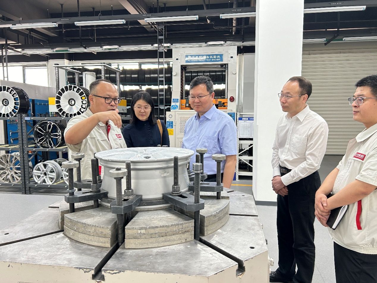 期间,崔刚一行参观了立中研究院、铝合金熔炼车间、轻量化零部件车间、精密车轮模具车间、铝合金车轮智慧生产线,体验了铝合金车轮生产全流程,了解了再生铝含量为70%的“绿色”铝合金车轮的开发历程,感受了立中车轮为低碳、绿色制造所做出的巨大努力。