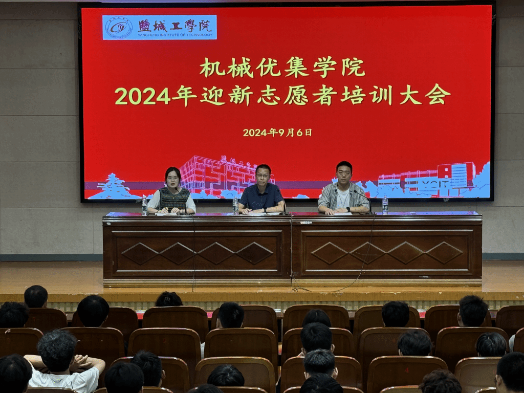 又是一年春好处,绝胜烟柳满盐工。为迎接即将到来的2024级大一新生,确保迎新工作顺利进行。机械优集学院于9月6日下午13点在机械馆报告厅召开2024年迎新志愿者培训大会。学院党委副书记闫小民、学工办副主任程云庆、团委副书记张长生以及学院全体迎新志愿者共计200余人参与。会议由学工办副主任程云庆主持。