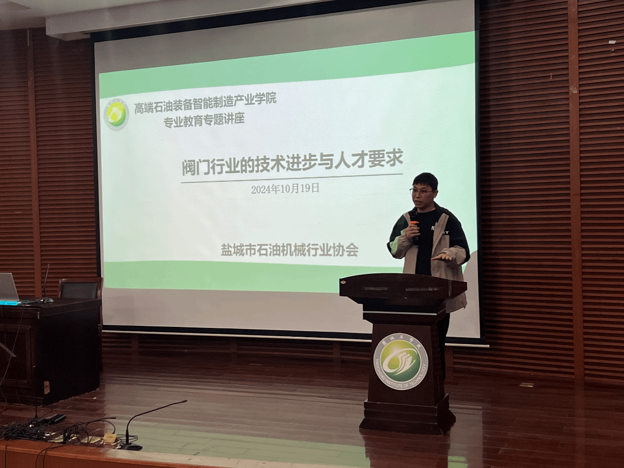10月19日下午,由盐城市石油机械行业协会主办、盐城工学院高端石油装备智能制造产业学院承办的专业教育讲座在盐城工学院南校区成功举办。讲座由江苏省模具智能制造工程中心主任刘军教授主持,并特别邀请了江苏圣泰阀门有限公司特聘专家富文华,合同管理部经理李伟两位具有丰富工程经验的行业专家作专题报告。机械优集学院相关专业师生约100人参加了本次讲座,原副校长刘德仿教授受邀出席了本次讲座。