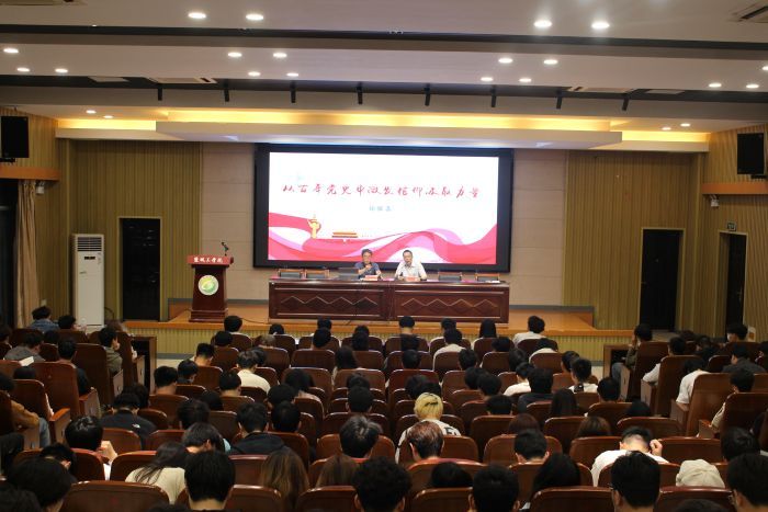 5月14日晚,机械优集学院邀请校关工委主任徐报喜作题为《从百年党史中激发信仰汲取力量》的专题报告,学院党委副书记阎小民主持,2025年春学期入党积极分子和发展对象近两百人参加学习。