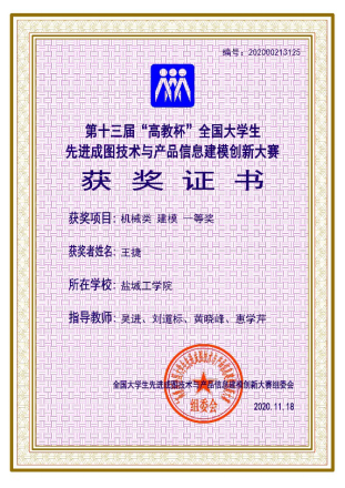 由机械工程学院刘道标、黄晓峰、惠学芹、吴进等老师指导的,机械工程学院、优培学院王捷、万鹏飞、吴玉森、龚子轩、程海龙、王志江、陆健、方灿等同学组成的机械类团队在比赛中取得较好的成绩,共获得单项一等奖1项、单项二等奖4项、单项三等奖3项,团体二等奖1项。